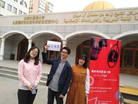 2018年5月5日,“人民网杯”高校德语配音大赛在北京外国语大学举行。这是第一届全国性的德语配音大赛。本次大赛由人民网赞助,北京外国语大学德语系主办,共有20支高校队伍参加。我院德语系2014级娄群阳及2015级王钇柔、王奕涵三位同学在赵洪彦老师的带领下代表辽宁大学参加本次比赛。